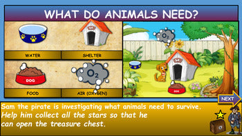 Interactive presentation & quiz on What Animals Need To Survive (Air (Oxygen), Water, Food and Shelter) Please watch the preview video to get an understanding of how this product works